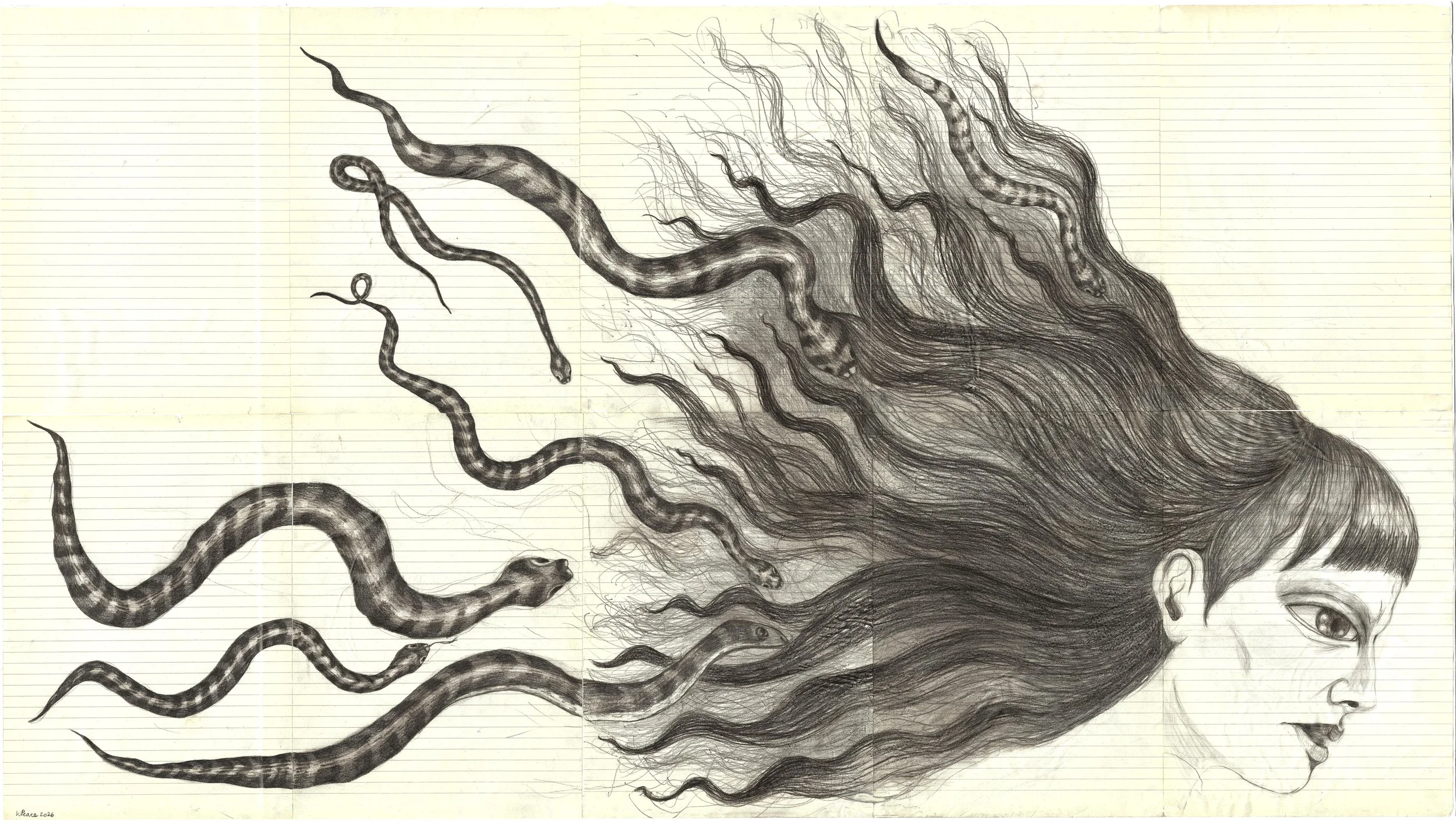 The Wind I Breathe, graphite on found paper, mounted on blotting paper. 112cm x 74cm. 2026